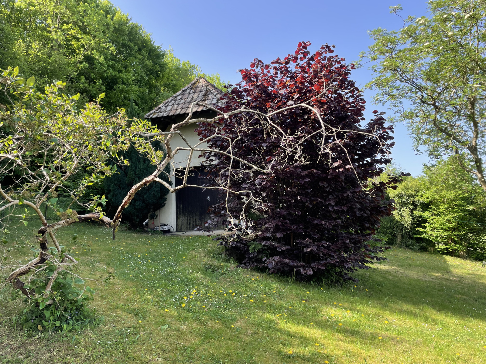 En rez de jardin: garage, cave, chaufferie, atelier. Garage indépendant.