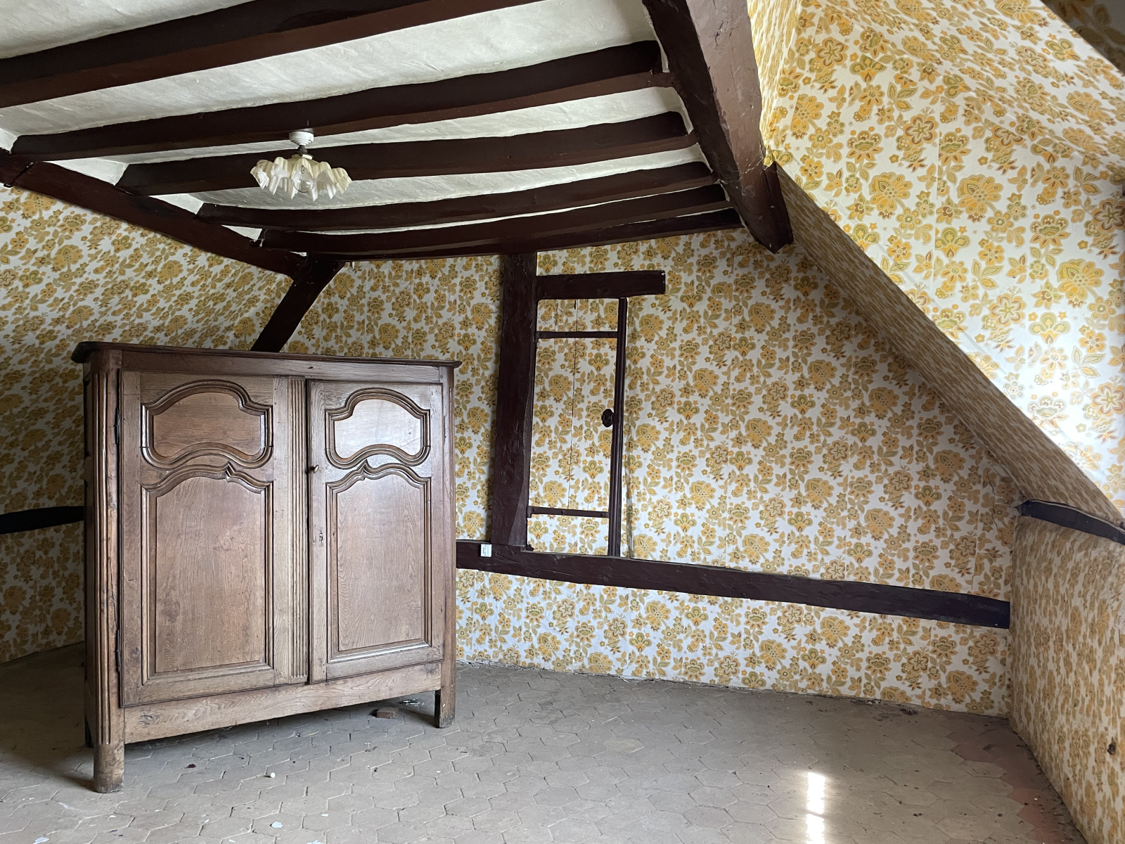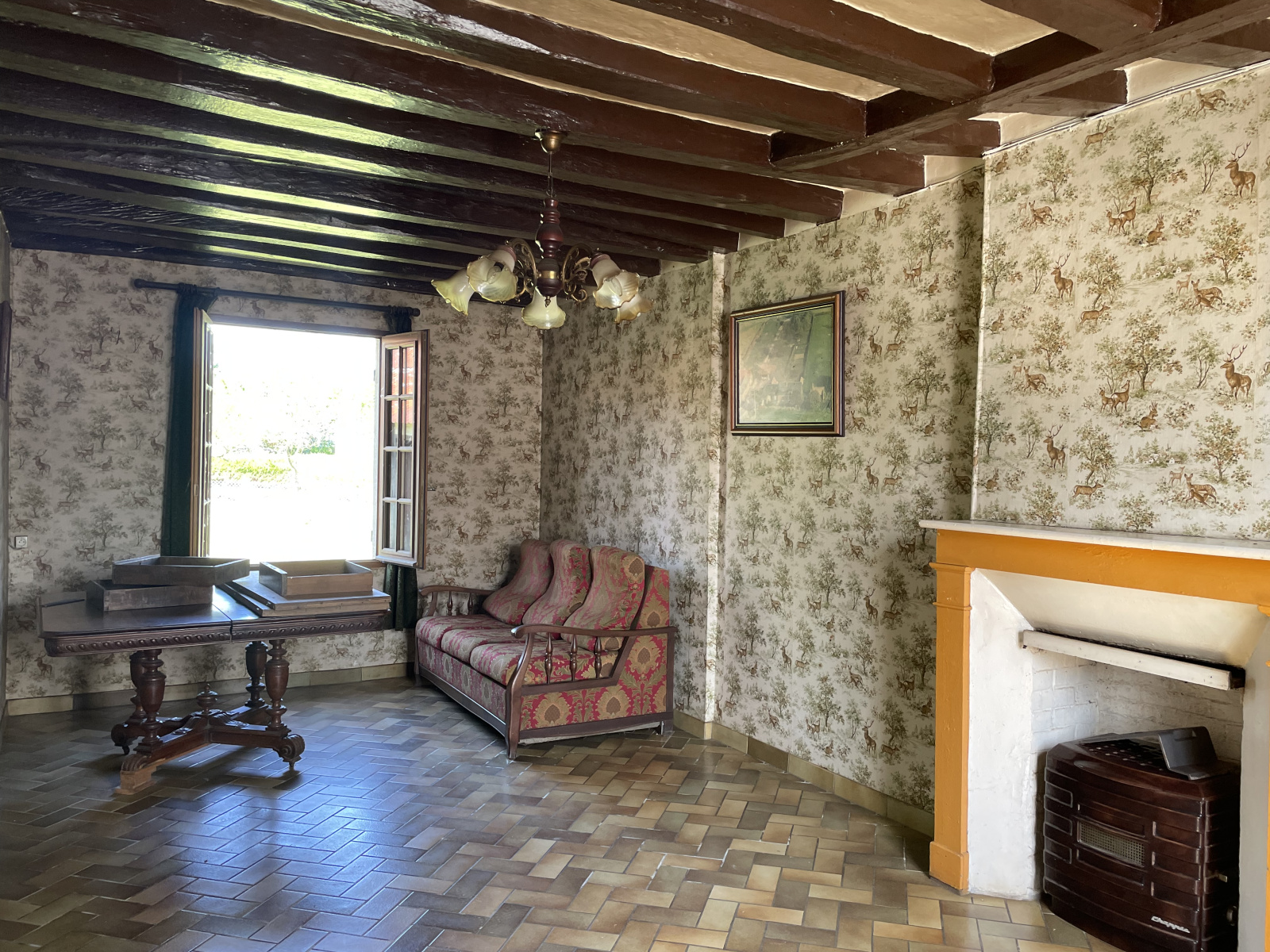 Au calme, dans un petit village, maison ancienne à rénover avec dépendance. Rez-de-chaussée : entrée, cuisine, séjour-salon et cheminée, chambre, salle d'eau et wc. A l'étage : 2 chambres en enfilade. Cellier et garage attenants.