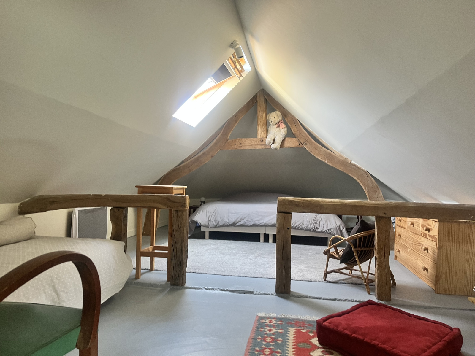 Etage: Belle pièce à usage de chambre double ou dortoir avec potentiel salle d'eau et wc.