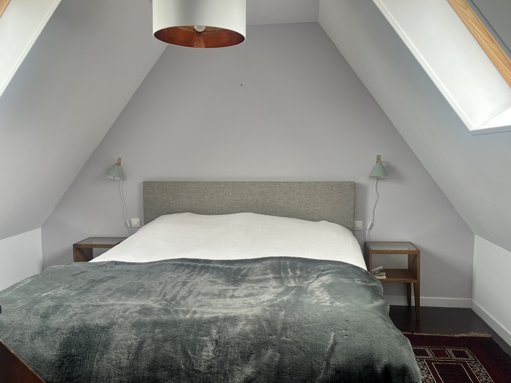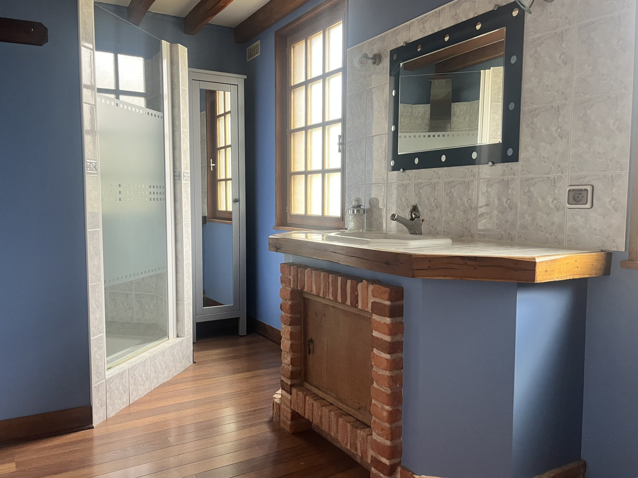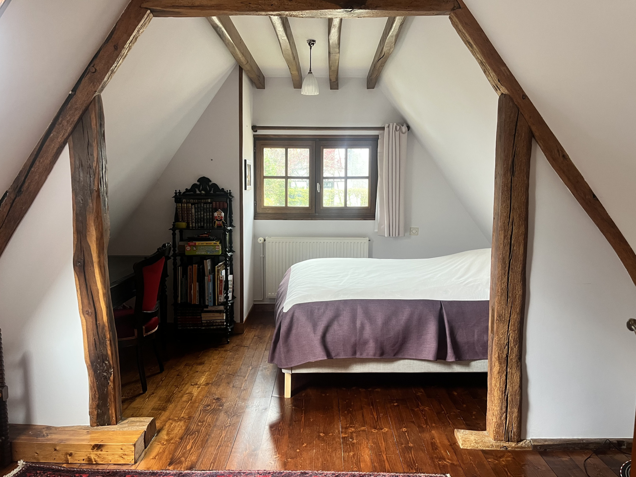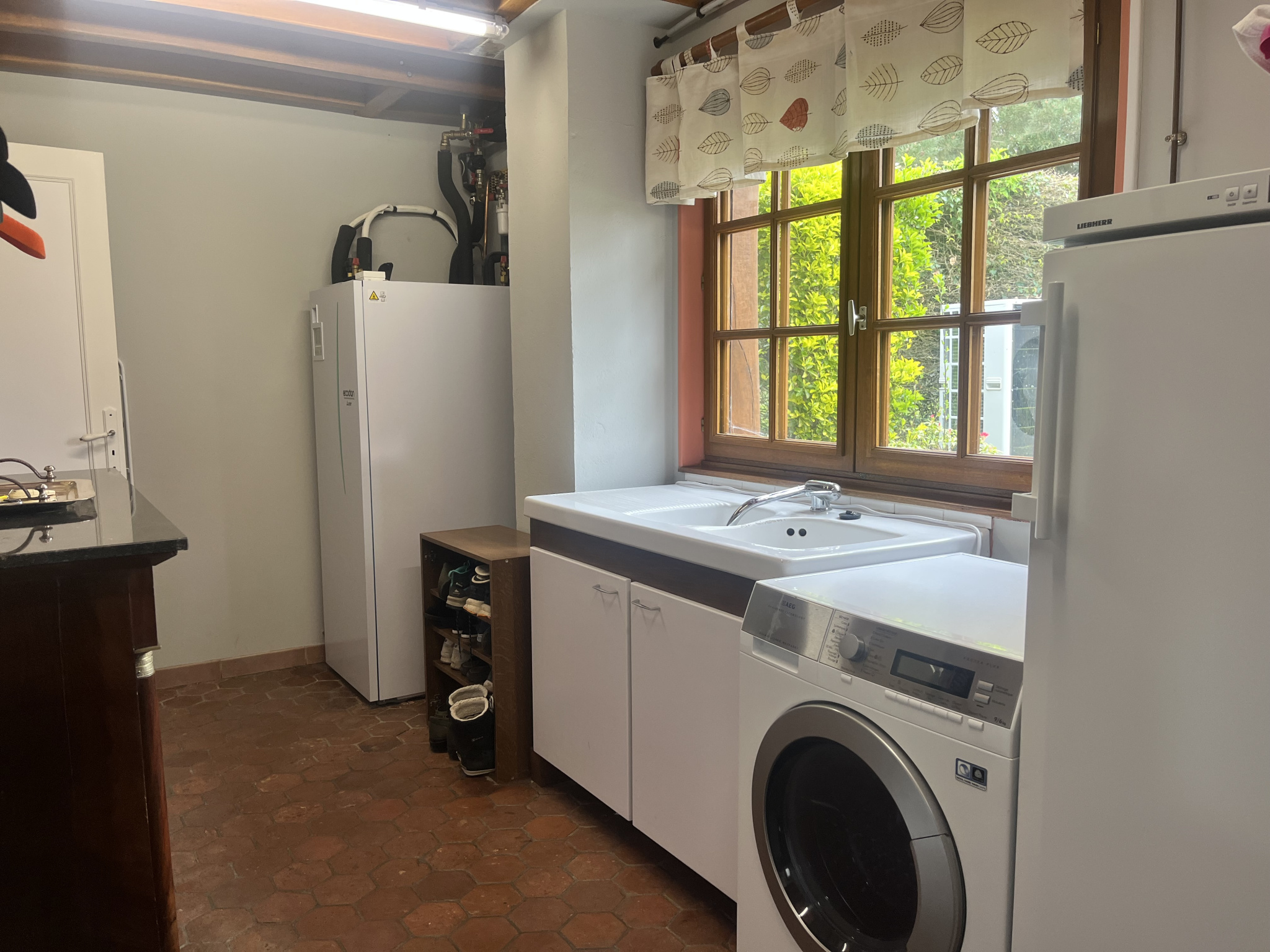 Garage avec porte automatique et prise voiture. Grenier au-dessus. Possibilité transformation en maison d’amis.