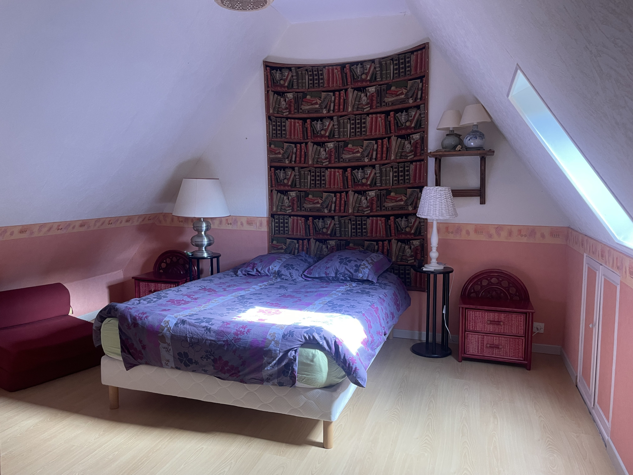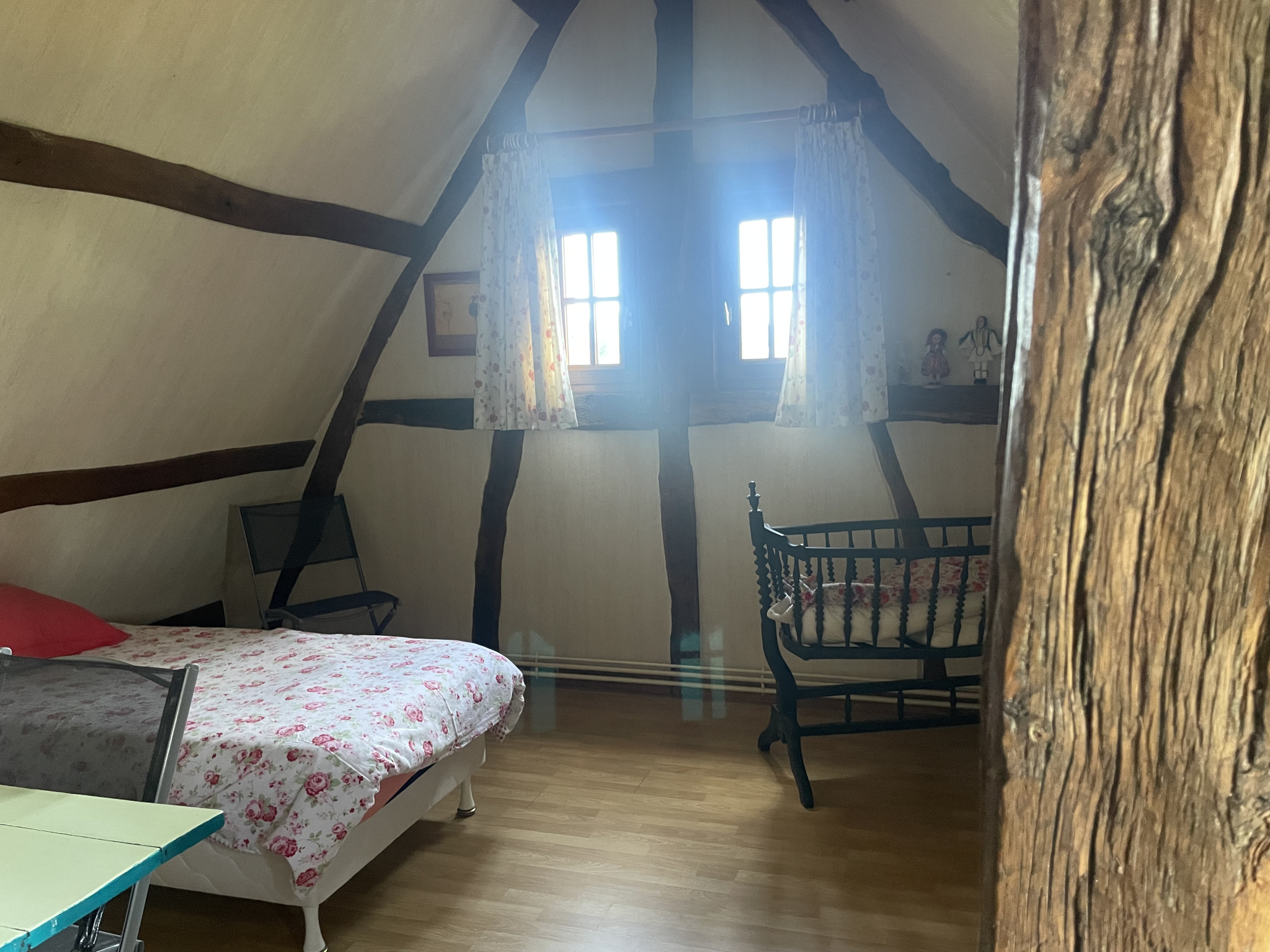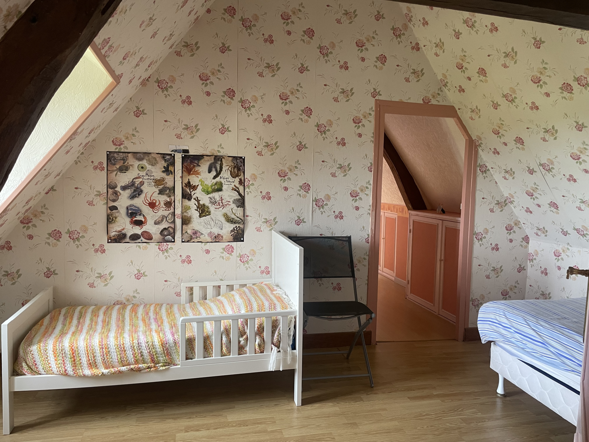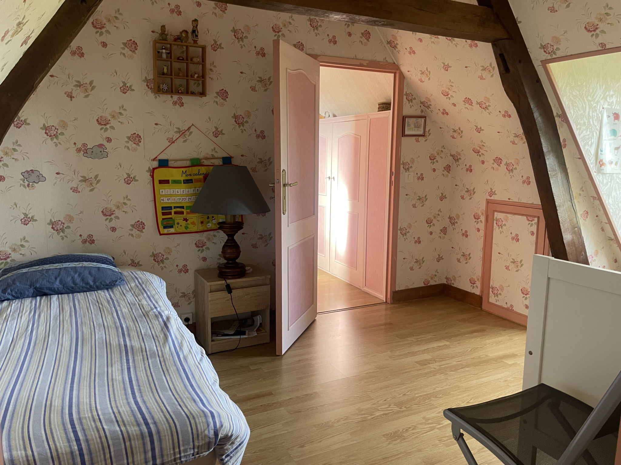 Etage : Pièce palière desservant 3 chambres, salle de bains avec wc (sany).