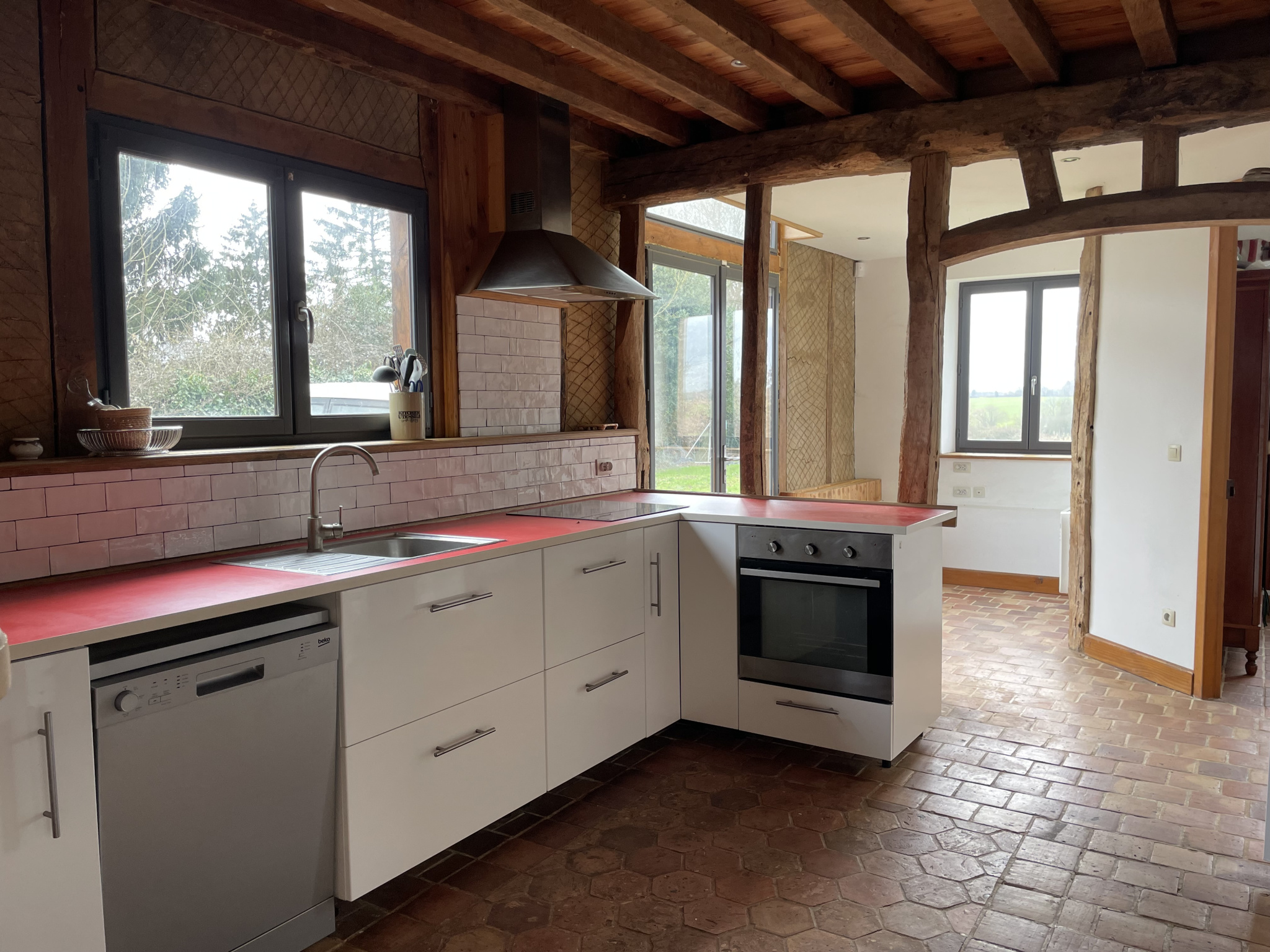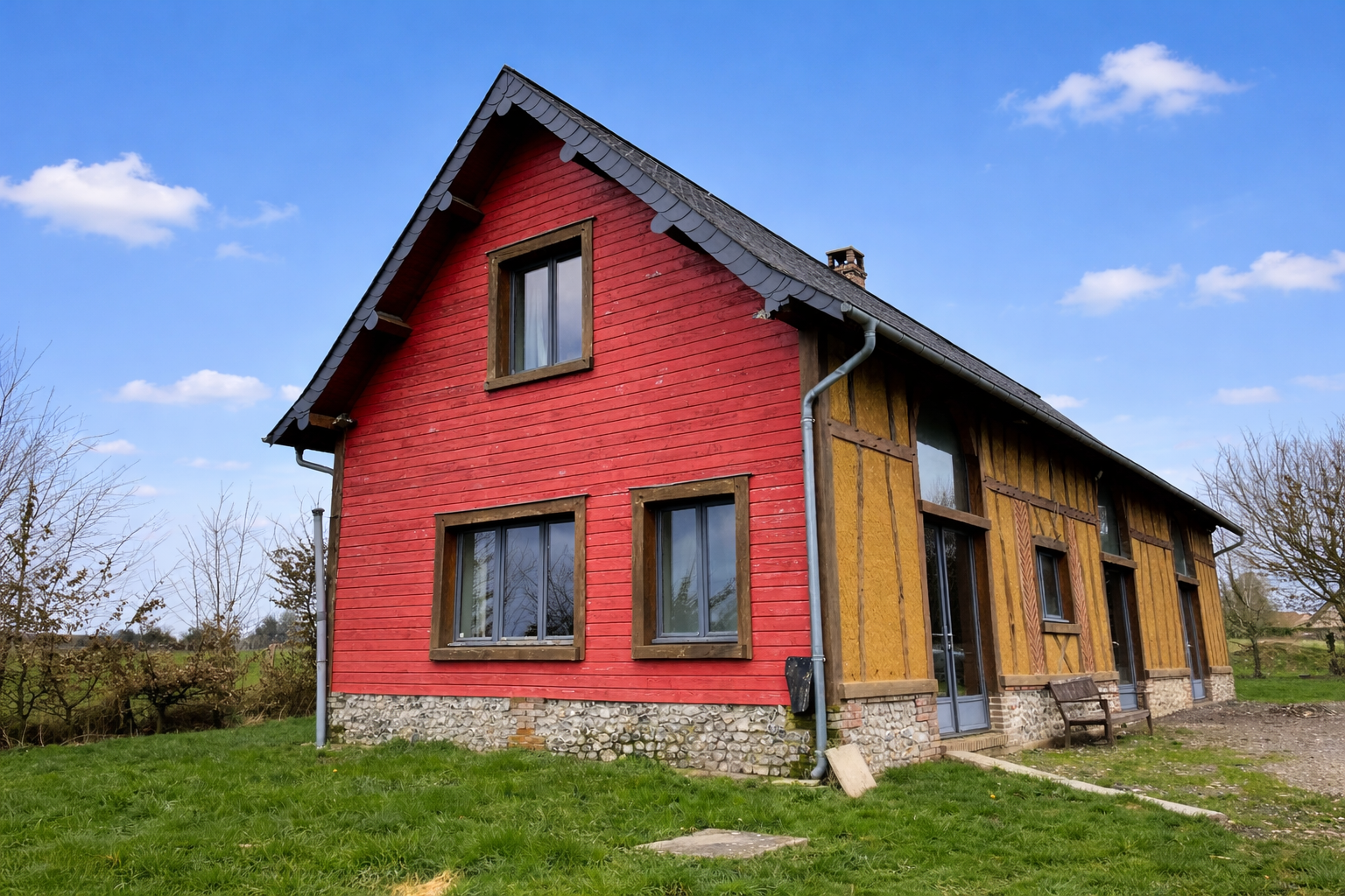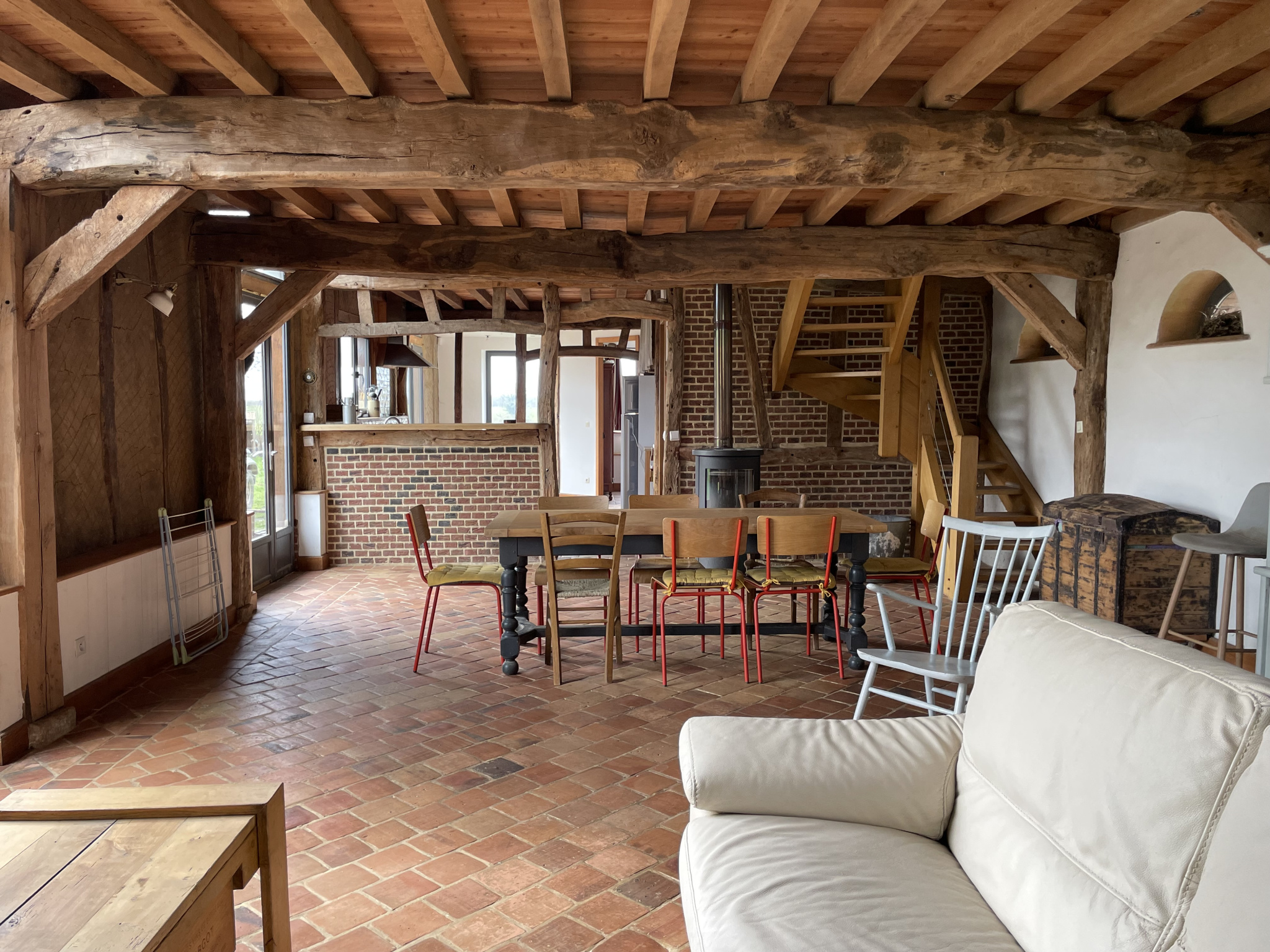 Au calme, ancienne grange reconstruite en 2014 (torchis et matériaux écologiques) avec terrain de pétanque sur un terrain plat de 2986 m².
