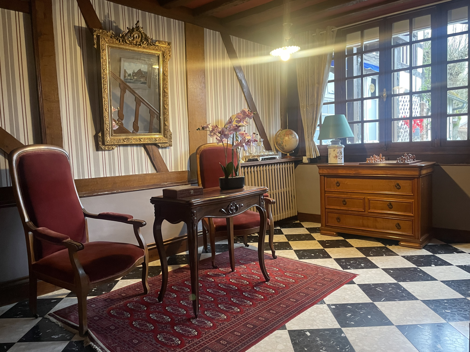 Au coeur de Lyons la Forêt, bâtisse de charme avec une partie commerciale louée.