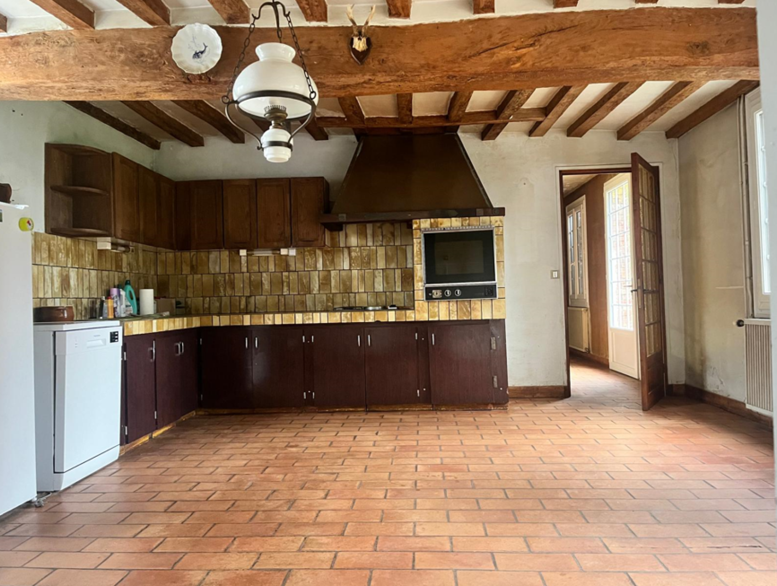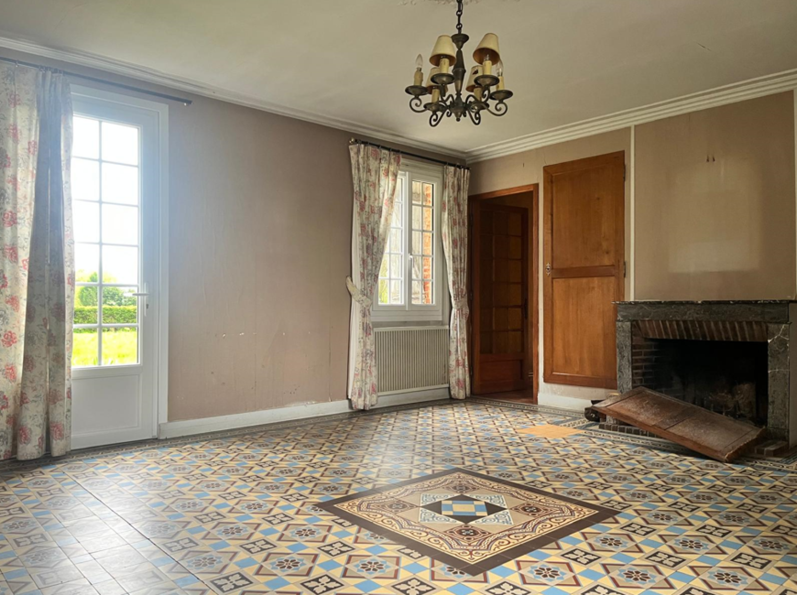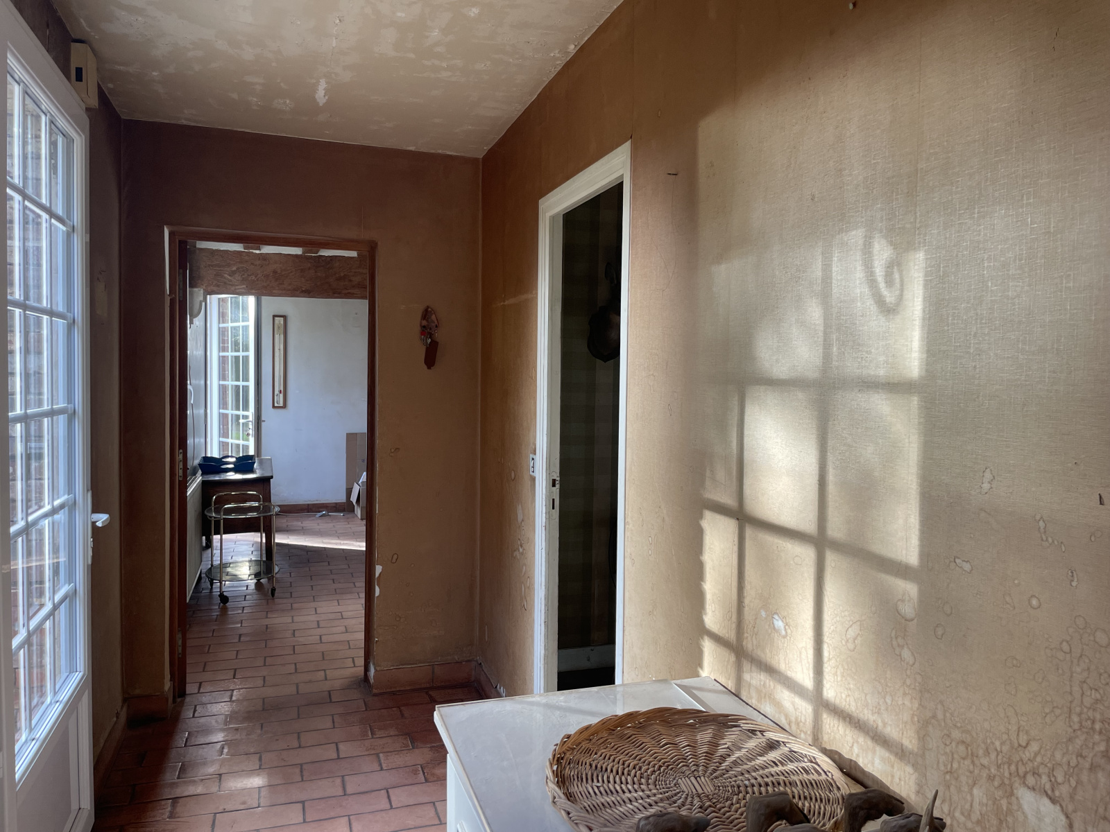 Maison de maître, en briques de 120m² à rénover. Elle offre au rdc une vaste cuisine aménagée avec espace repas, salon avec cheminée, bureau ou chambre, salle de bains, wc, chaufferie.