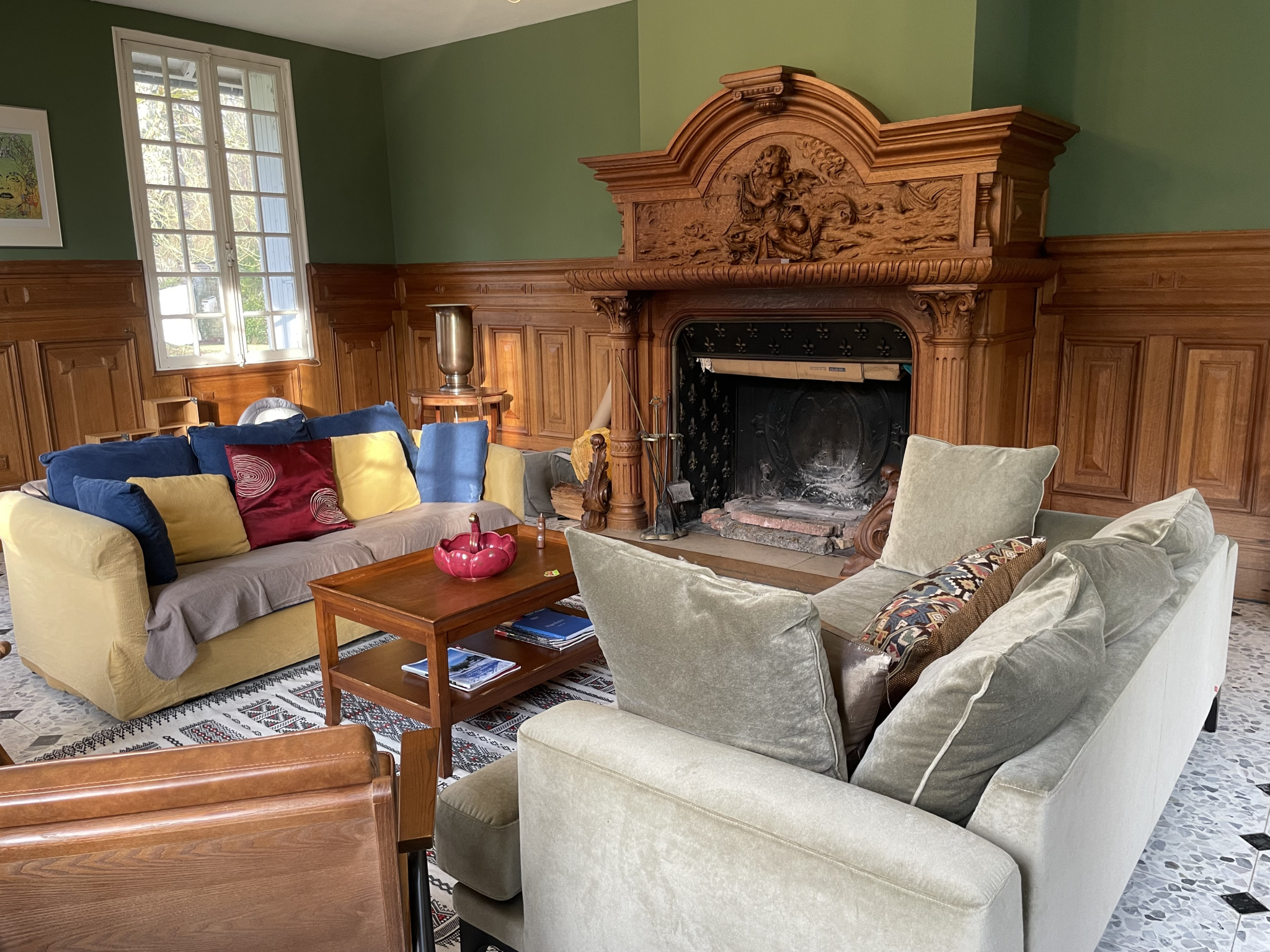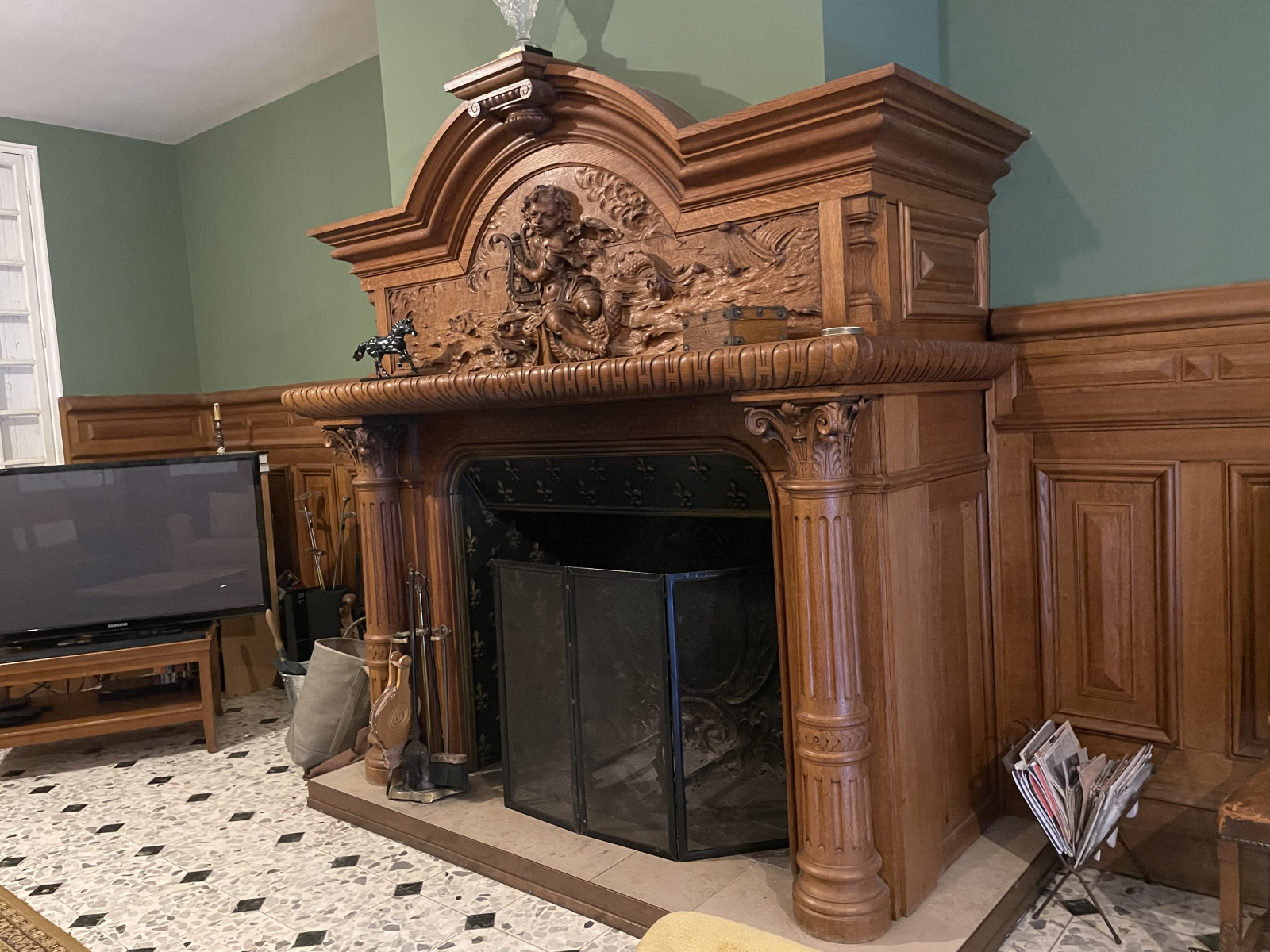 Rdc: Entrée, vaste salle à manger avec cheminée, petit salon, double salon avec boiseries et superbe cheminée, cuisine aménagée et équipée, arrière cuisine, buandrie, 1 chambre avec salle d'eau et wc, wc avec point d'eau.