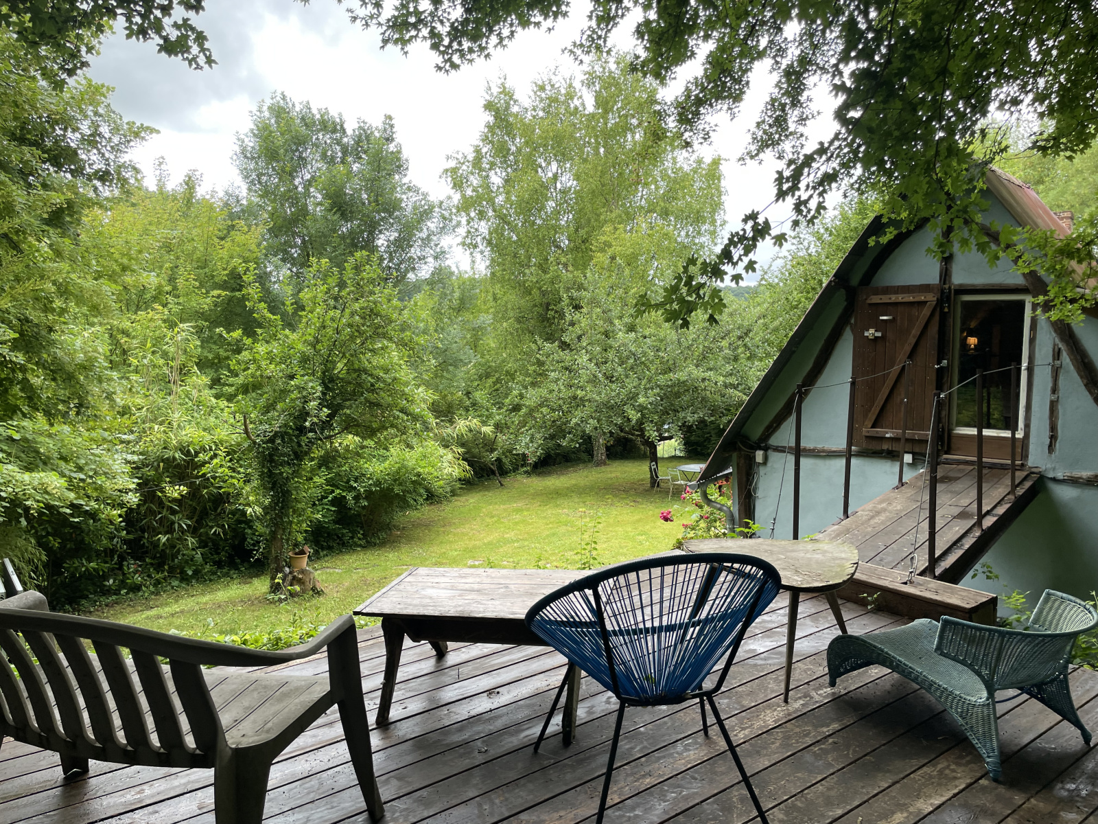 Une petite échelle de meunier nous transporte à l'étage qui ouvre sur 3 chambres dont 1 double. Une passerelle nous permet de profiter d'une terrasse bois en haut de jardin....