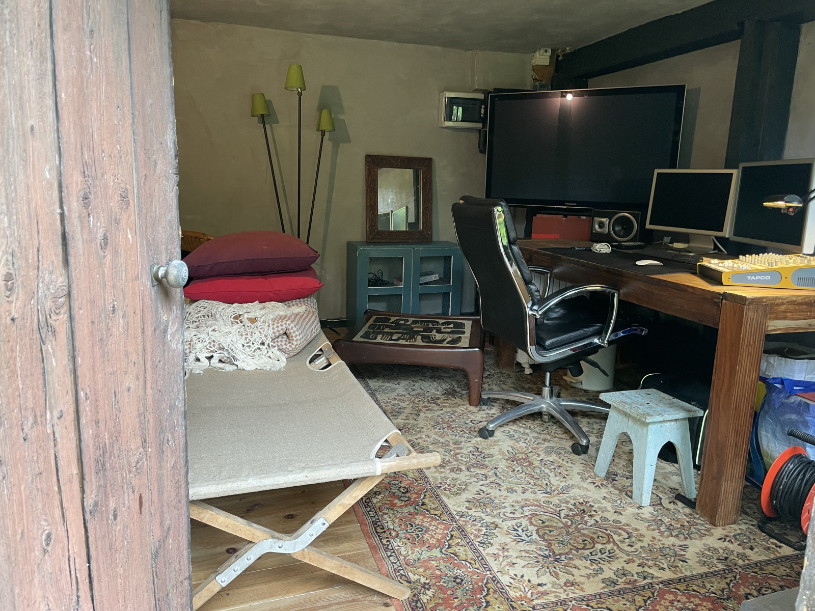 Rdc: Salon avec cheminée hyper cosy, séjour avec poele à bois, cuisine aménagée, 1 chambre, salle d'eau, wc. Une chambre ou bureau par accès extérieur.