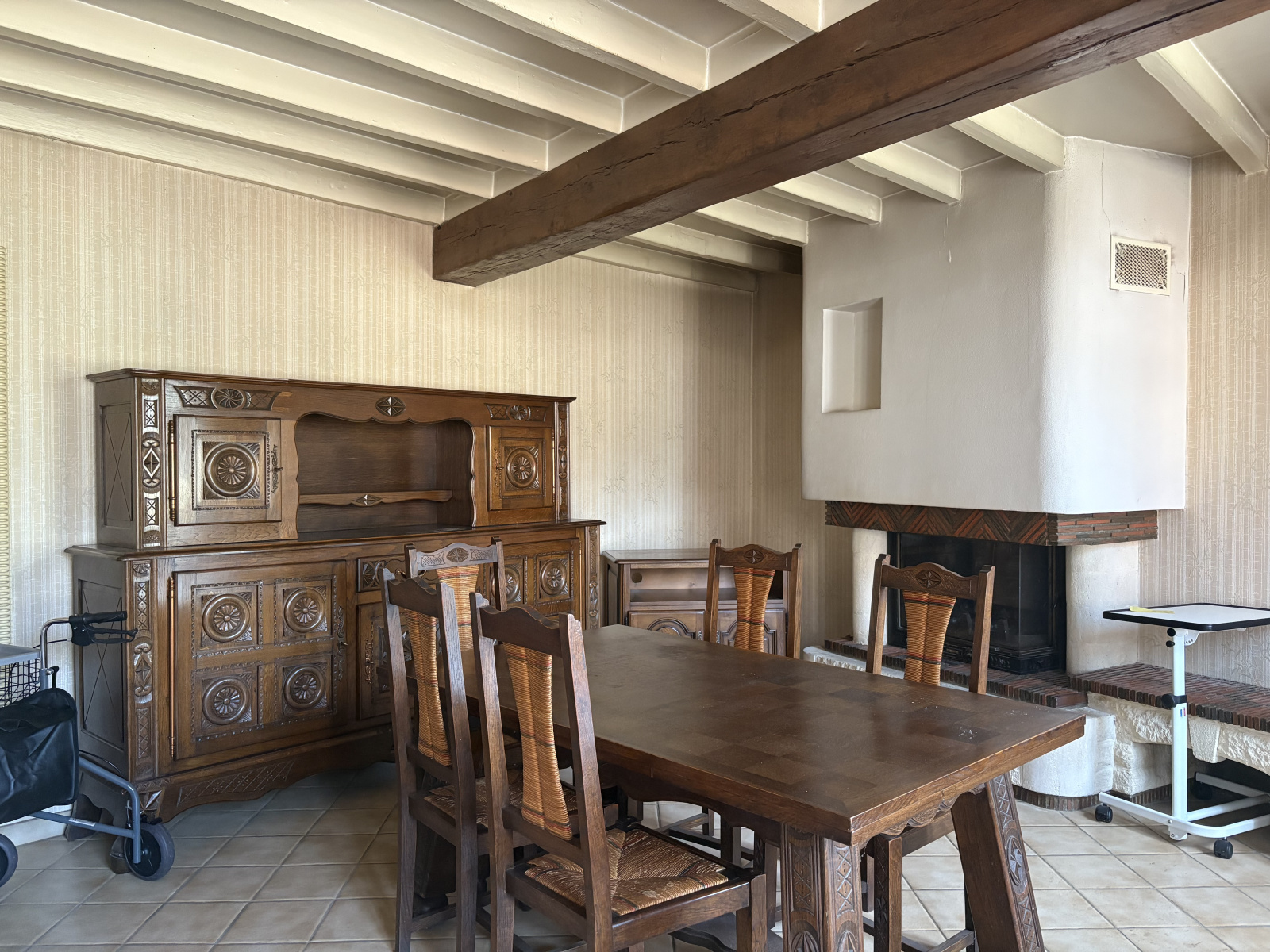 Rdc: Entrée, cuisine aménagée et équipée ouverte sur le séjour avec cheminée/insert, ancienne épierie à transformer en salon ou nouvelle activité, salle d'eau, wc.