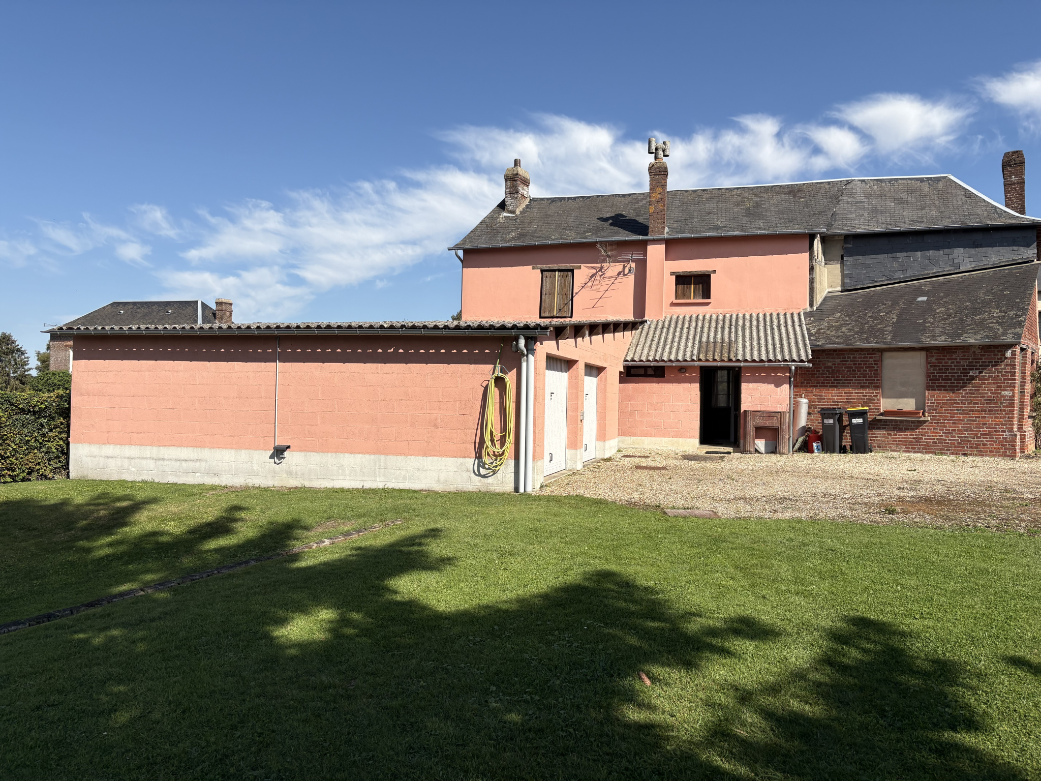 Cellier attenant, garage double, chauffage électrique, assainissement individuel.