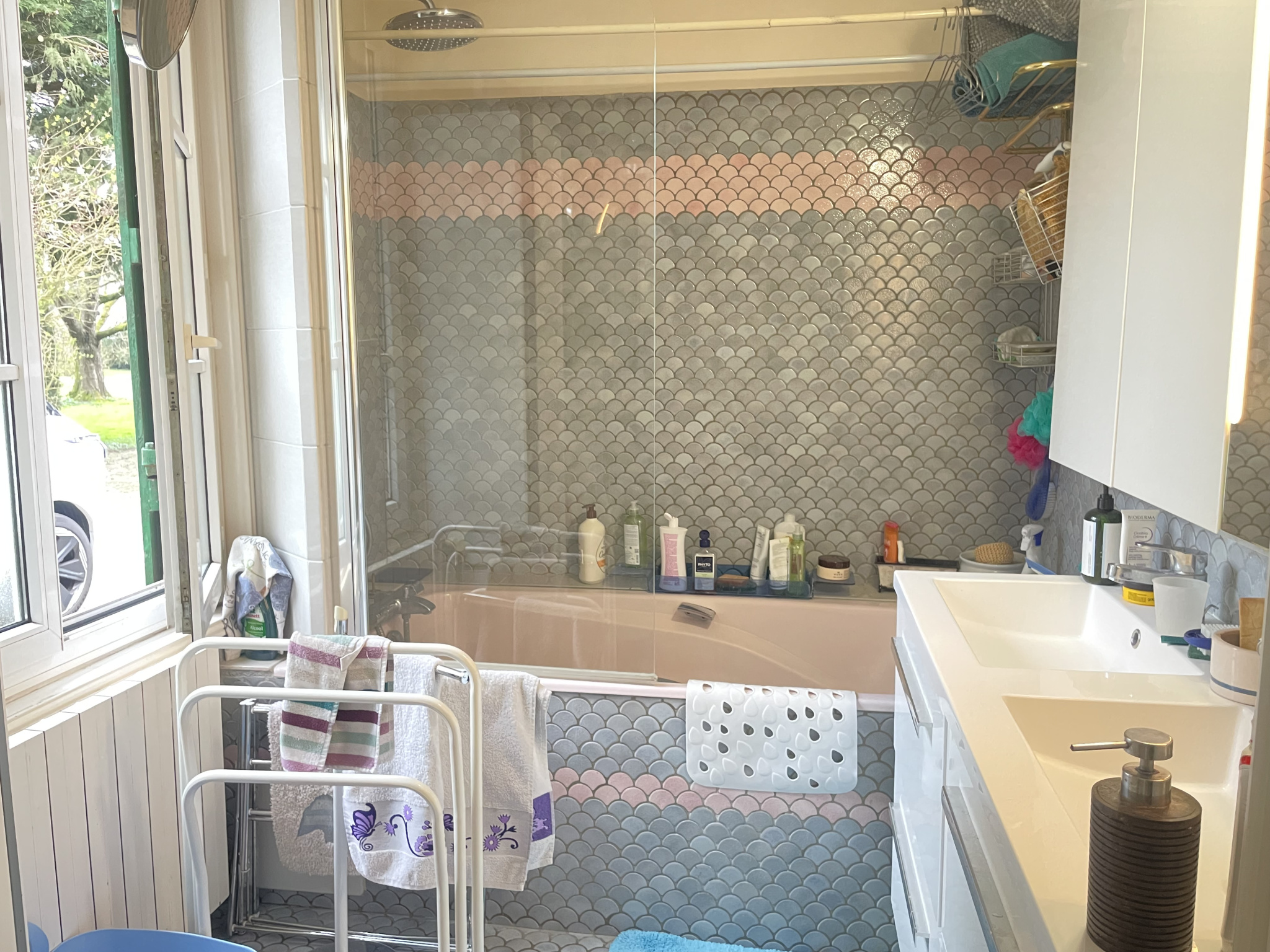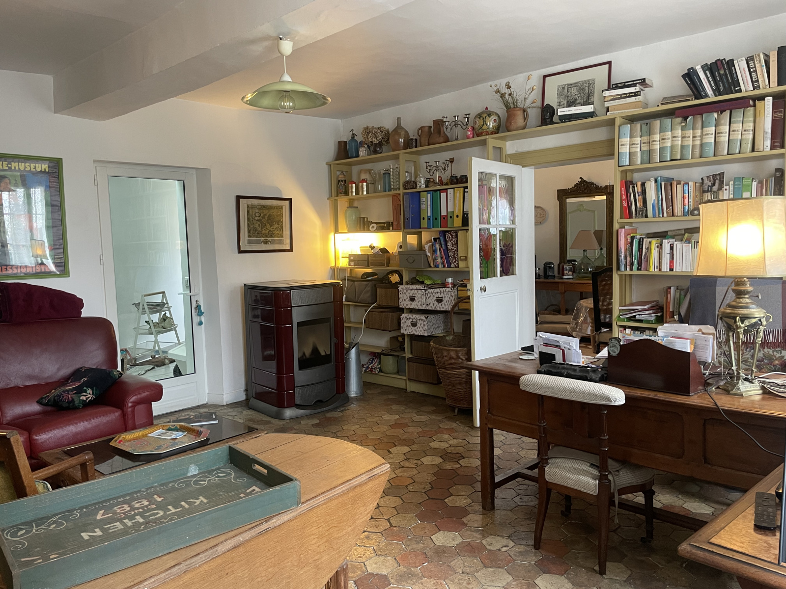 Rdc: Entrée, espace bureau, salle à manger, salon avec poele à pellets, cuisine aménagée et équipée, 2 chambres, bureau, salle de bains avec wc, lingerie, arrière cuisine, wc.