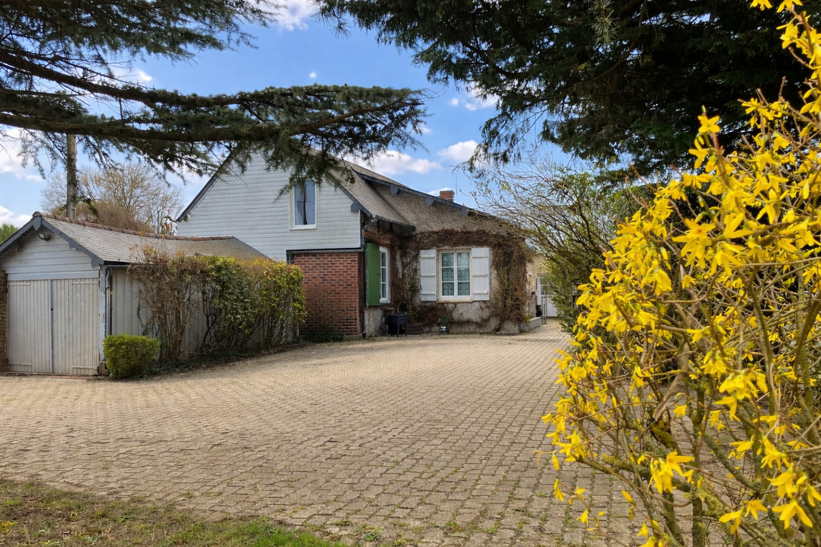Cave voutée, garage, chauffage gaz et pellets, assainissement individuel.