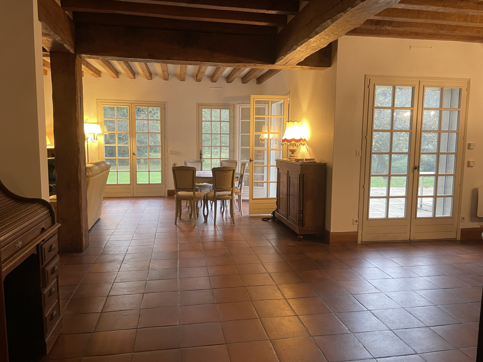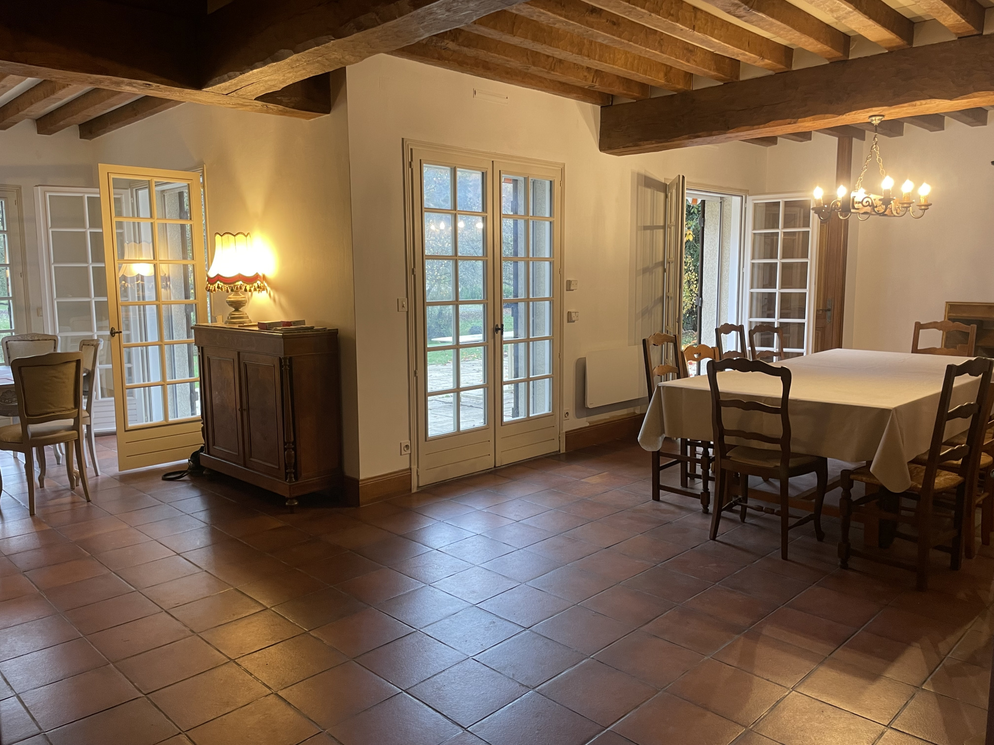 Sous-sol total (cave, garages, ateliers), double vitrage, chauffage électrique par convecteurs, terrasse