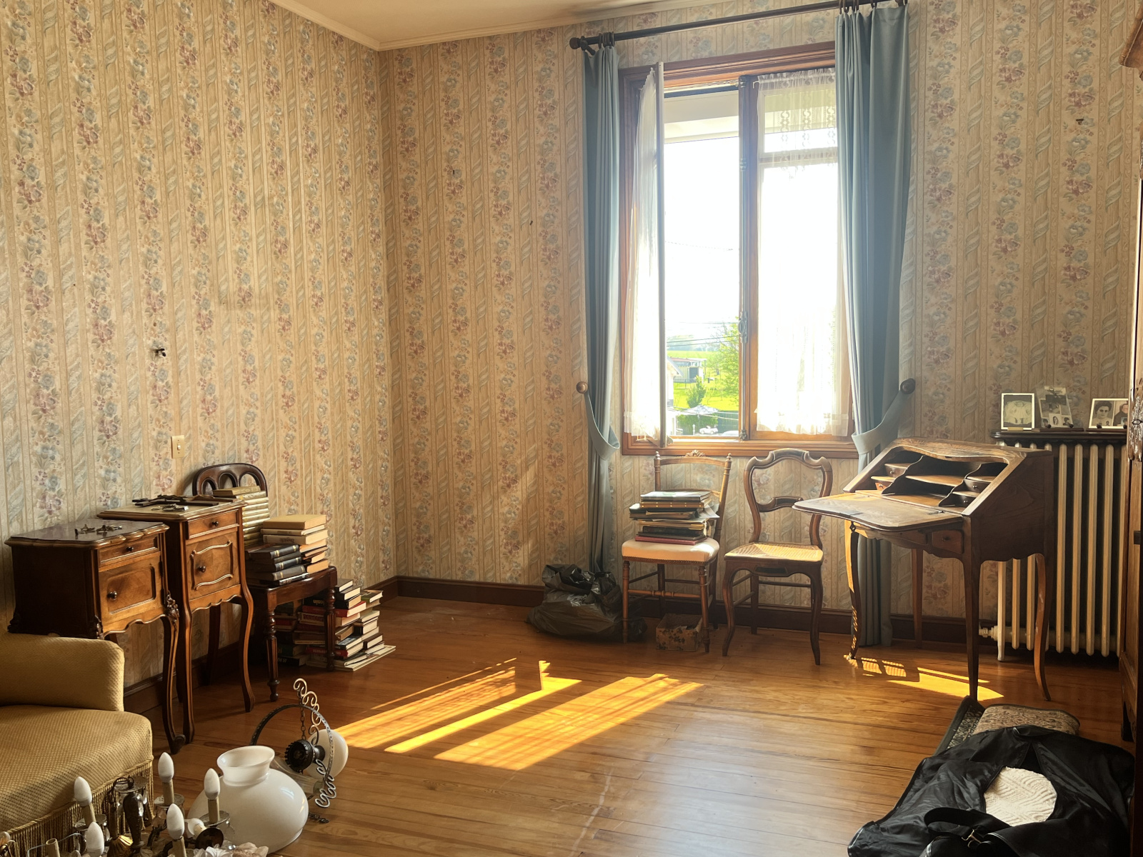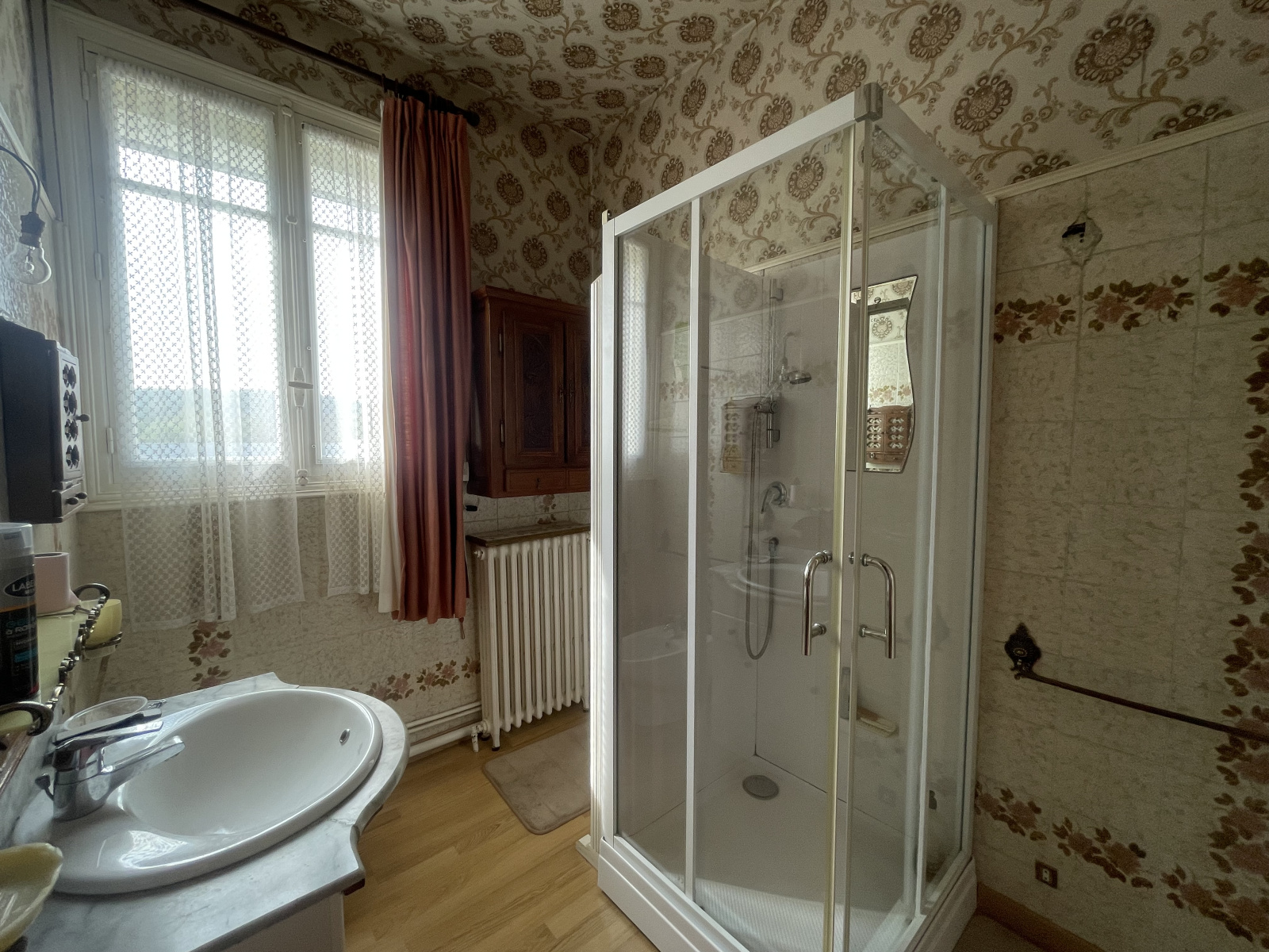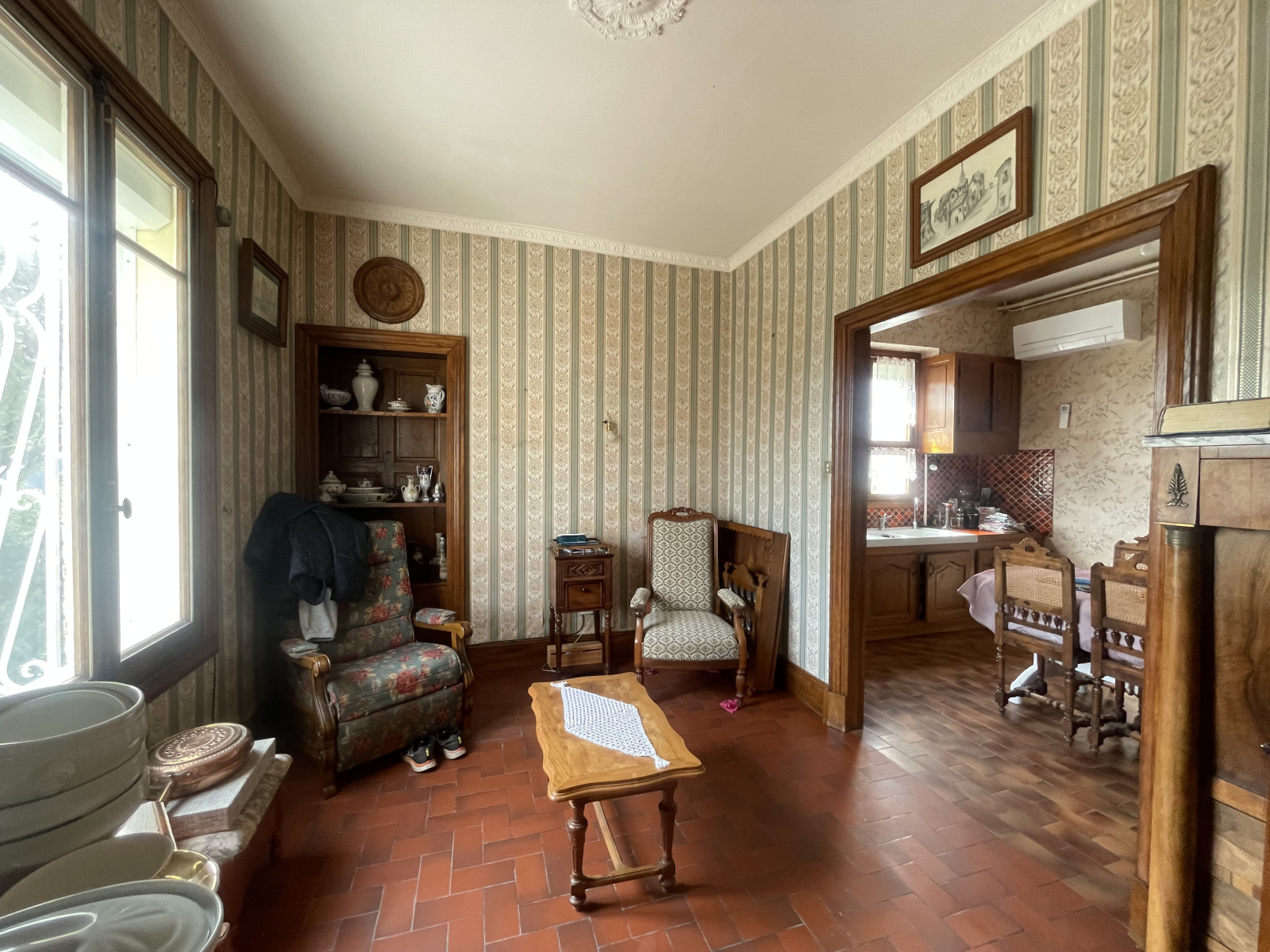 Tout à l'égout, chauffage fioul, double vitrage bois, climatisation cuisine.