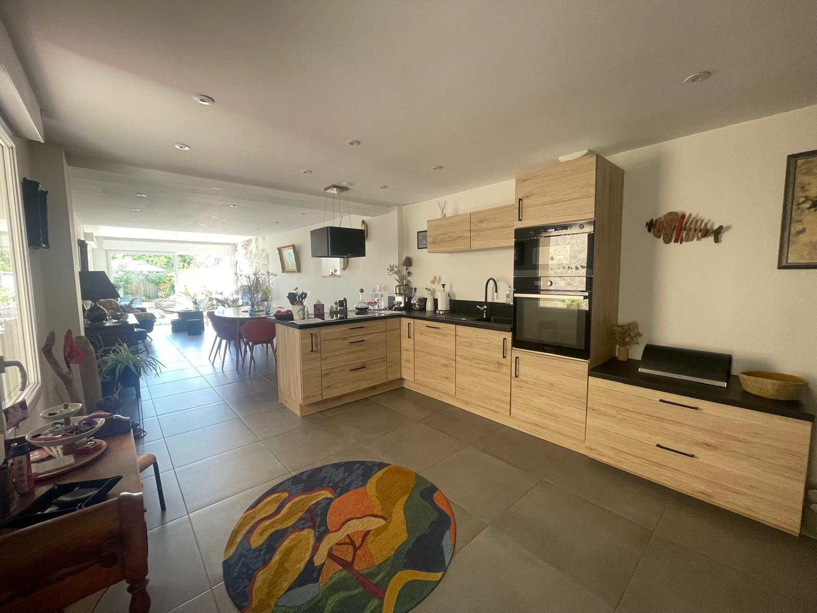 Rdc: Cuisine aménagée et équipée ouverte sur l'espace sjour-salon avec une baie vitrée offrant un espace repas sur la terrasse, arrière cuisine, wc.