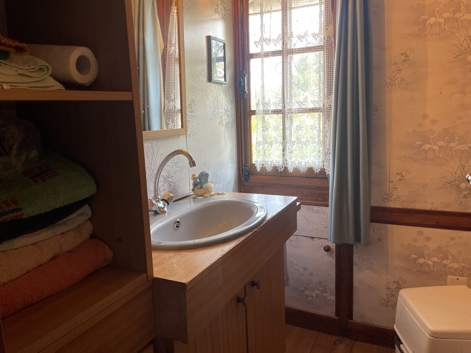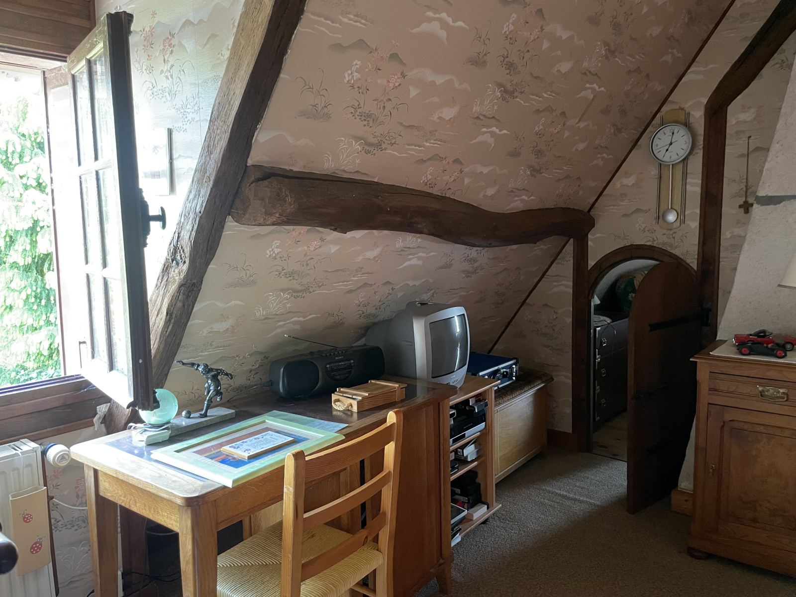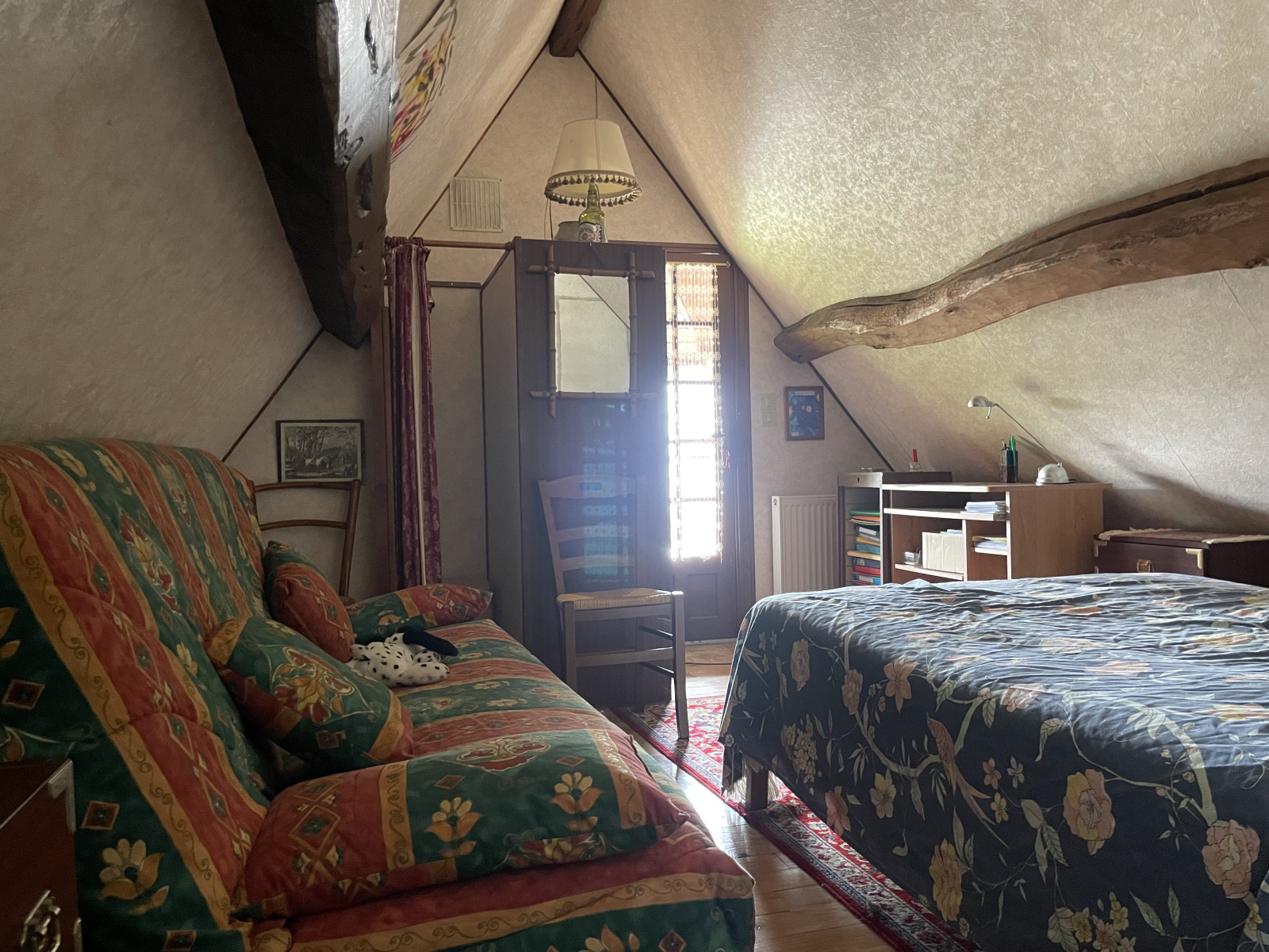 Etage: Palier, 1 chambre puis 2 chambres en enfilade, cabinet de toilettes avec wc (Sanibroyeur).
